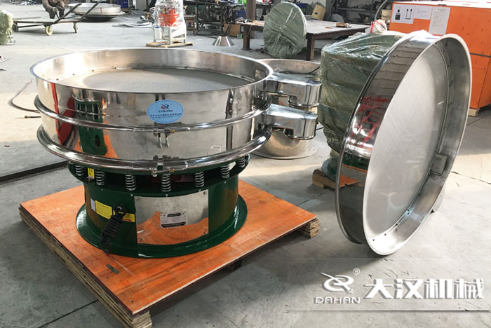 DH-1000-1S型振動篩分機為1500mm直徑單層兩出口不銹鋼三次元振動篩,子母網(wǎng)分離式網(wǎng)架,與物料接觸半部為304不銹鋼材質,底座為碳鋼材質。